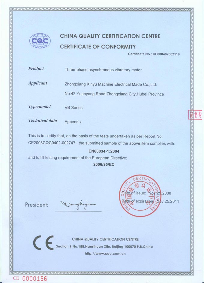 鐘祥新宇機電制造股份有限公司前身是鐘祥電機廠,1968年籌建工廠,原機電部確認(rèn)為定點生產(chǎn)中小型電機的專業(yè)廠家。主要生產(chǎn)各類振動電機、振動機械、輸送機械。是中國電器工業(yè)協(xié)會中小型電機分會理事單位、中國重型機械工業(yè)協(xié)會洗選設(shè)備專業(yè)委員會理事單位,是中國大型的振動電機生產(chǎn)廠家。銷售經(jīng)理寇紅波,熱線:13797914837。